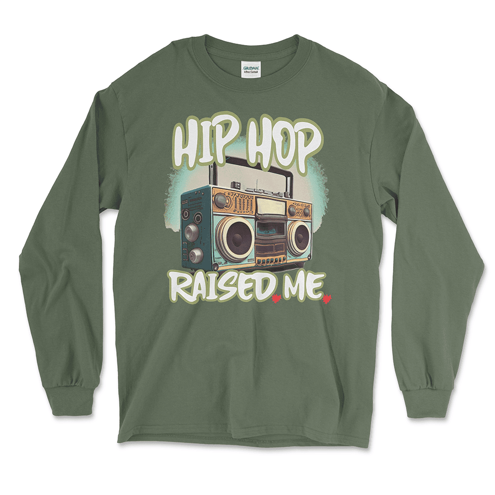 Celebrate the golden era of rap & Hip Hop music with the “Hip Hop Raised Me” long sleeve t-shirt, a tribute to the rhythm and soul of 80s and 90s hip hop culture. Featuring a bold boombox design, this shirt is the ultimate piece for music lovers who want to wear their passion with pride. Crafted from comfortable cotton, it’s the perfect blend of style and nostalgia, making it one of the best retro hip hop music long sleeve shirts online. Whether you’re rocking it as vintage urban streetwear long sleeve hip hop apparel or gifting it to someone who can’t get enough of classic beats, this shirt brings timeless energy to any wardrobe.