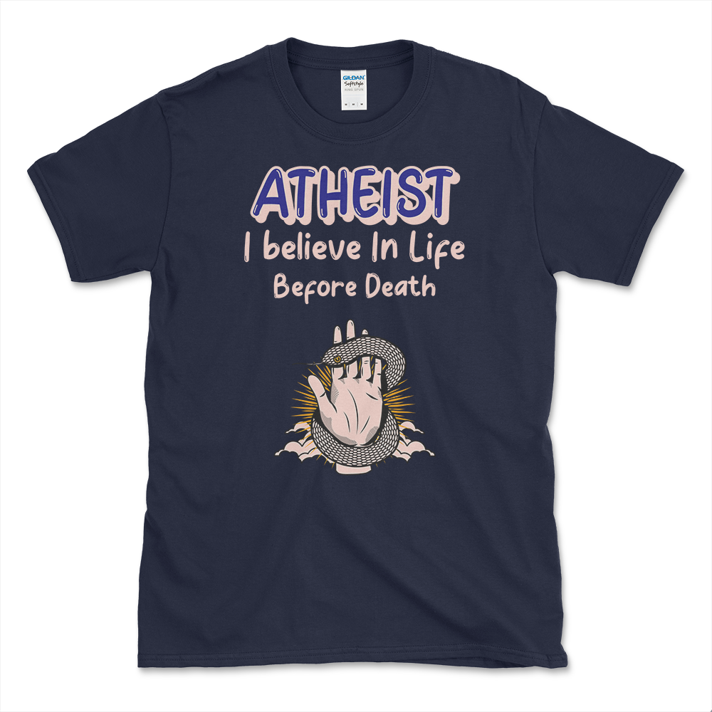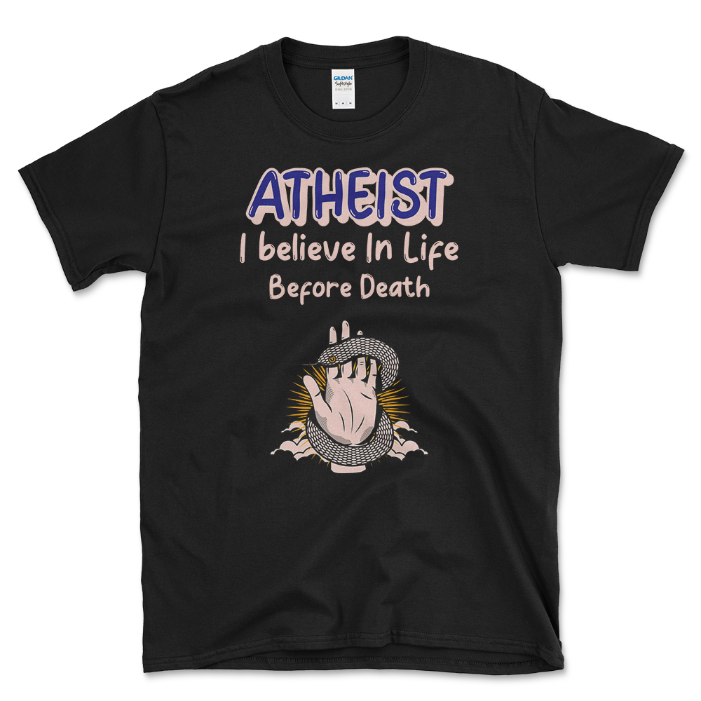 Embrace the here and now with our thought-provoking atheism t-shirt that boldly declares, “I Believe in Life Before Death.” This design encapsulates the essence of living a purposeful, meaningful life rooted in the present moment. It celebrates the power of human connection, empathy, and making a positive impact in the world without relying on supernatural beliefs. Wear this shirt proudly and invite conversations about the value of embracing this life and cherishing the experiences we share. Let your attire become a symbol of living with intention, finding joy in the present, and fostering a sense of responsibility towards making this world a better place. Join the movement of human-centered philosophies and let your voice be heard in celebrating the beauty and significance of life before death.