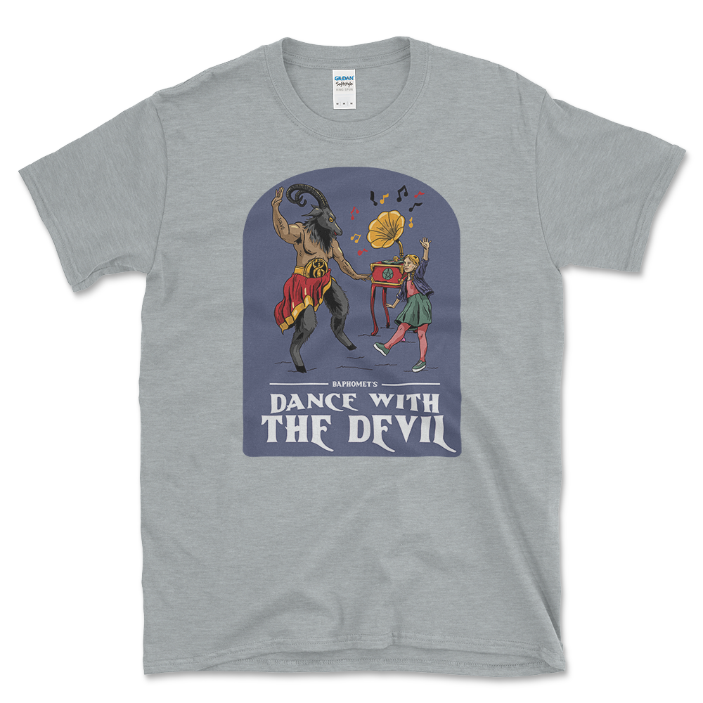 Embrace the enigmatic allure and challenge societal norms with our captivating “Dance with the Devil” t-shirt. This design invites you to explore the uncharted territories of the human psyche and break free from conventional expectations. Featuring a whimsical depiction of a child dancing with the mesmerizing Baphomet, it represents a rebellious spirit and a celebration of personal freedom. Wear this shirt as an emblem of your defiance against conformity, encouraging others to question the boundaries of their own existence. Let your attire be a conversation starter about embracing the unknown, facing fears, and stepping outside of comfort zones. Dance with the Devil, metaphorically speaking, and let your style embody the unconventional, the mysterious, and the audacious. So, seize the moment, challenge the norms, and let this shirt be a reminder that sometimes the most exhilarating experiences come from embracing the unknown.