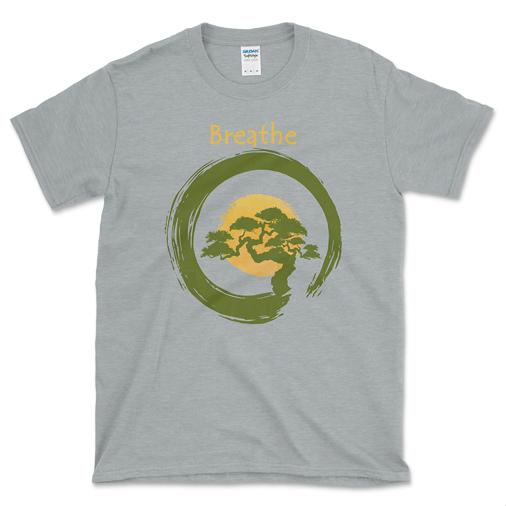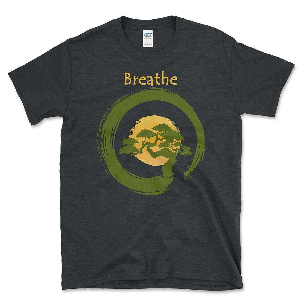 **Introducing the Circle of Calm Breathe T-shirt:** Embrace the serenity of the bonsai and the completeness of the enso circle with every wear. Designed thoughtfully for those who walk the mindful path, this shirt is more than just a piece of clothing—it’s a statement of intent, a reminder to ground oneself in the present moment. Each detail, from the intricate bonsai to the flowing enso circle, has been crafted to resonate with the very essence of meditation. Whether you’re deep in your practice or simply stepping out for a relaxed day, this shirt will be a gentle nudge towards inner peace.