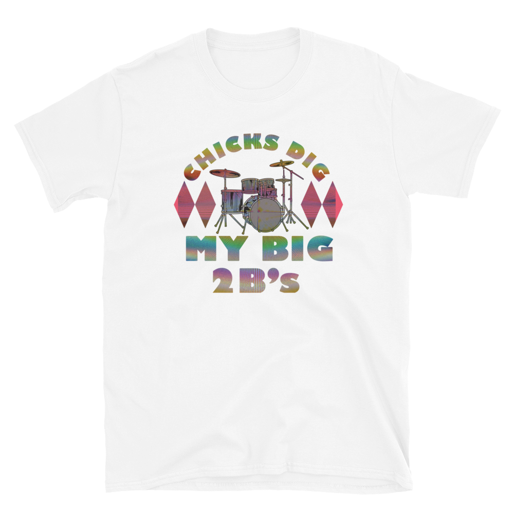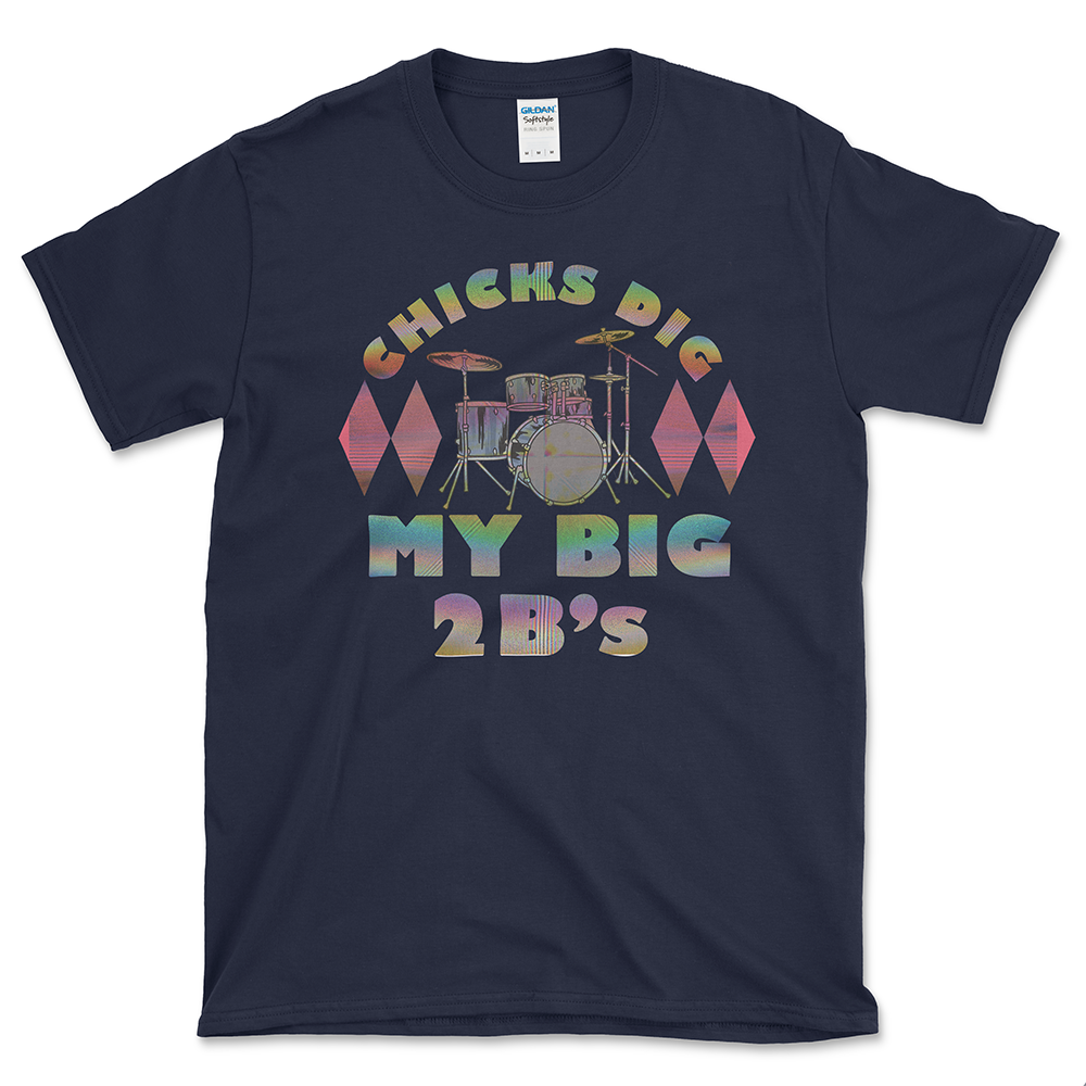 For the Drummer with a Beat and a Sense of Humor: Every drummer knows that behind every epic drum solo or rhythm section, there’s a pair of trusty drumsticks, and for those who favor the mighty 2Bs, we’ve got the perfect tee. Our drummer’s t-shirt, emblazoned with the cheeky phrase, “Chicks Dig My Big 2Bs,” captures both the power and playfulness of the percussion world. Accompanied by a stylish drum set graphic, it serves as a badge of honor for those who truly understand the weight and intensity behind those larger sticks. Whether it’s rock, drumline, or any beat in between, this shirt resonates with the drummer’s soul.