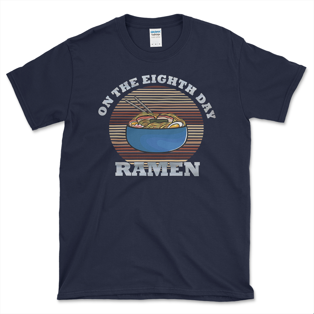 Get ready to crack up with our hilarious “On the Eighth Day, Ramen” T-shirt! This shirt is perfect for all the ramen enthusiasts out there who believe in the divine power of this delectable dish. With its clever and playful design, it combines mouthwatering imagery with a touch of humor that will surely make you the life of any gathering. Crafted with premium quality fabric, it ensures comfort and durability, making it ideal for everyday wear. Whether you’re a die-hard ramen lover or simply appreciate a good laugh, this shirt is a must-have addition to your wardrobe. Let your love for ramen shine through and bring a smile to everyone’s face with our “On the Eighth Day, Ramen” T-shirt.